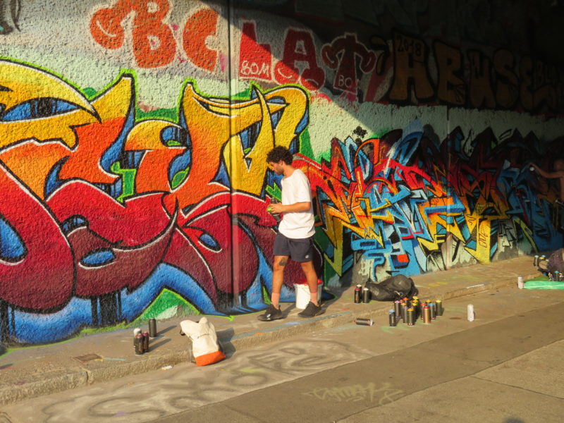 The city becomes, of course, more and more colorful with these large surfaces adorned by major graffiti artists; the art draws a particular section of tourists as well, helping the economy. I was most taken by the spontaneous output though, outside of these organized extravaganzas. You can discover real creativity and fantasy and wit on a daily basis by so many unknown sprayers who come and go, not having to fear retribution.