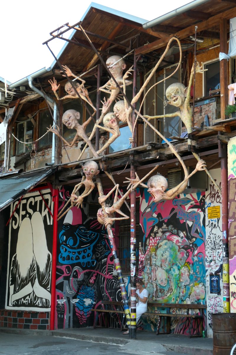 Across the river, however, you encounter an explosion of graffiti, sculpture and objects defying description when you enter the terrain of the Autonomous Metelkova Cultural Center Mesto -an umbrella term for one of the liveliest cultural, artistic, social and intellectual urban areas imaginable on par with other alternative and underground cultures in Europe.