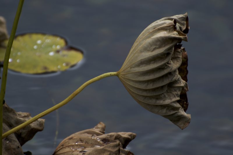 For now, let me quote Bradley’s description of an exhibit piece in the 2016 show which also explains my choice of photographs for today – the wilted Lotus plants.