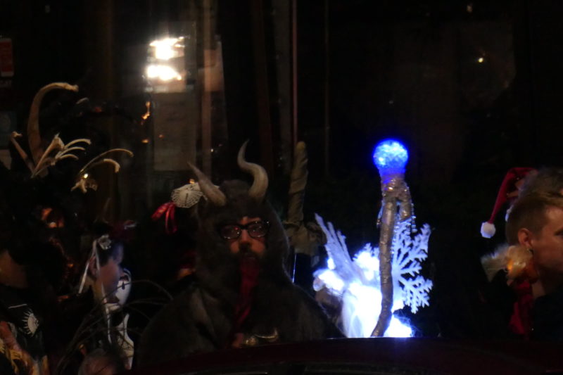 On the first night of Hanukkah I found myself surrounded by a gaggle of otherworldly creatures swarming along the sidewalks of Hawthorne Blvd. “We are Krumpus, ” I was told, “we come to whisk away the naughty children, to lick them with our poisonous tongues, to give out pieces of silver to the good ones.” Needless to say, I received a piece of silver, tinfoil wrapping some unknown substance that I’m saving for a rainy day….