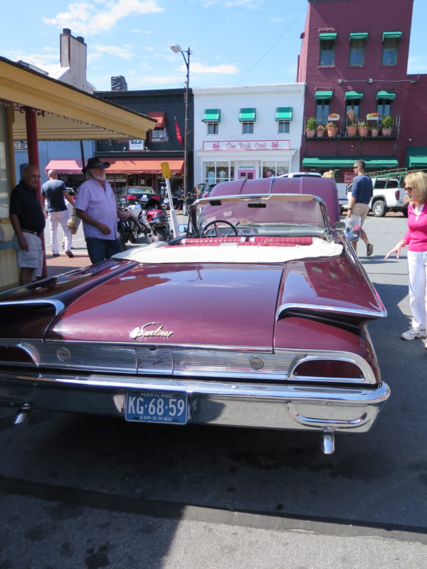 I happily chat up the first category – they happen to be older, enamored with their automobiles, crazy to share every single detail and, if you are lucky, invite you to sit in their car (although don’t even think about driving it.) There is a true community out there of car collectors, and they spend every penny they have to provide the vehicles with original parts and details. Their cars sit still for the most part unless they are moved to shows and exchanges, as below in Annapolis. (And, by the way, most of them are men, thus the gendered title….) the very nice owner of this car let me even hold his recent trophy!)
