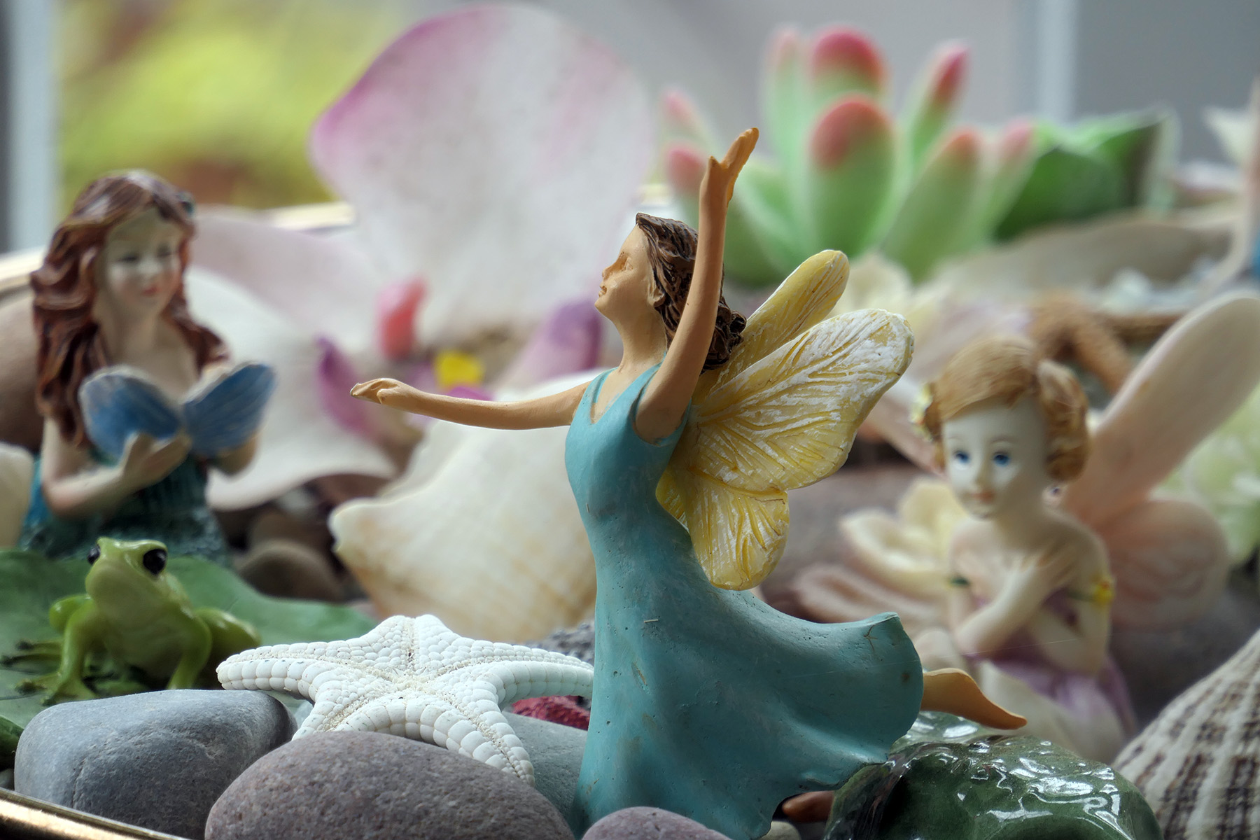I love fairy gardens, unabashedly so. The whimsey in their construction appeals to me and the enchantment they bring to the kids of the neighborhood, or the part of my soul that preserved some childlike longings, is a sight to behold.