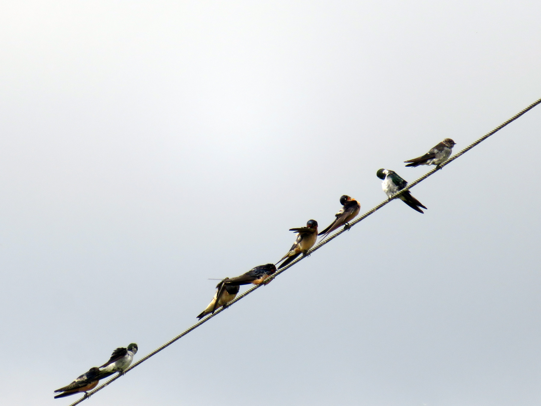 The wires in my head got all crossed. So many different associations triggered by the sight of swallows congregating on steel cables, perhaps getting ready to leave for warmer climes.