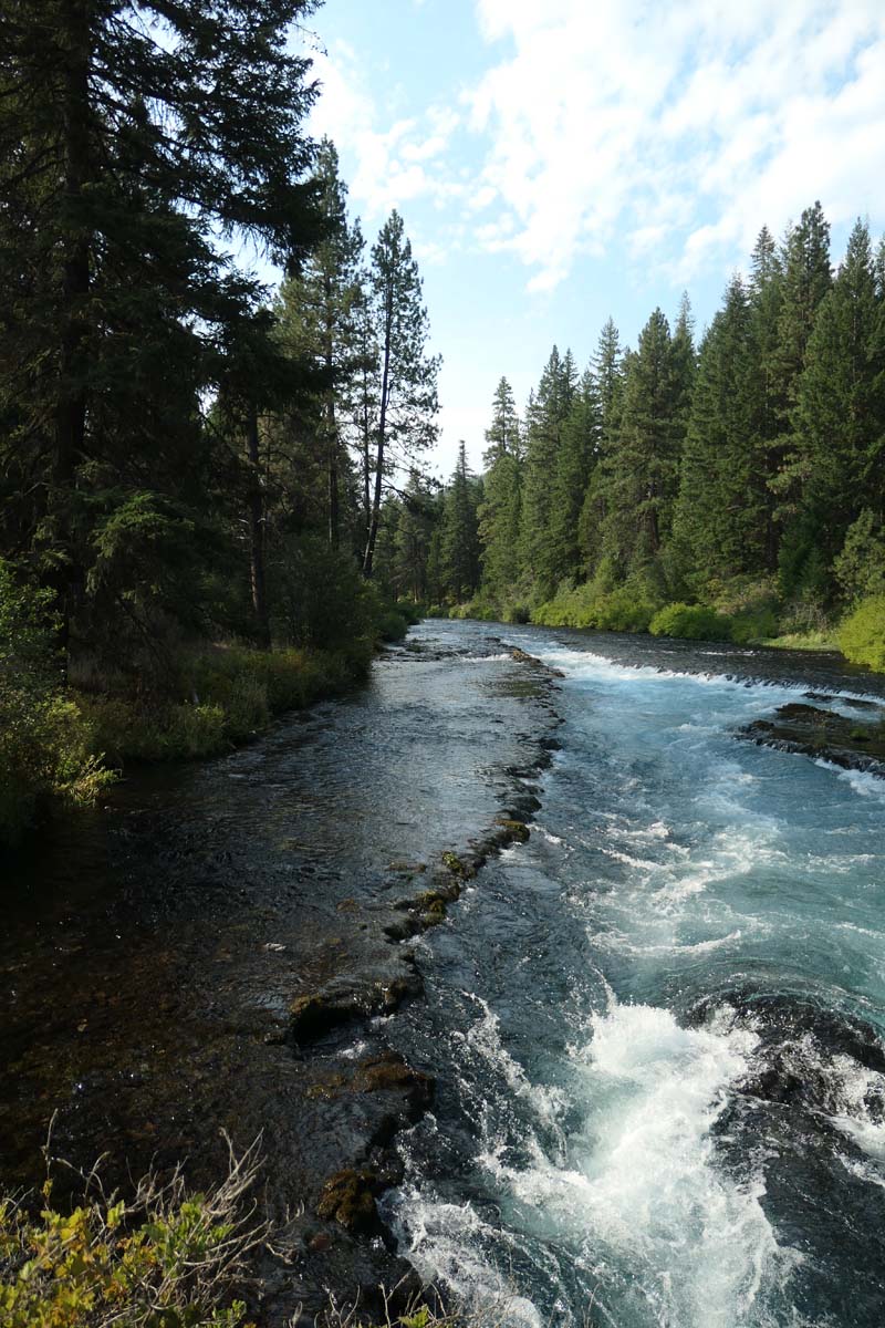 A tiny unincorporated hamlet, Camp Sherman, caters to vacationers and fishermen, with camping sites (21 campgrounds in the watershed area…), small cabins and a store established in 1918 that has not seen much change since the first wheat farmers of Eastern OR came during the summers a century or more ago to escape the heat. Only barbless catch & release fly fishing is allowed these days, the photo of these trout were taken at a fish hatchery adjacent to Wizard Falls on the river.