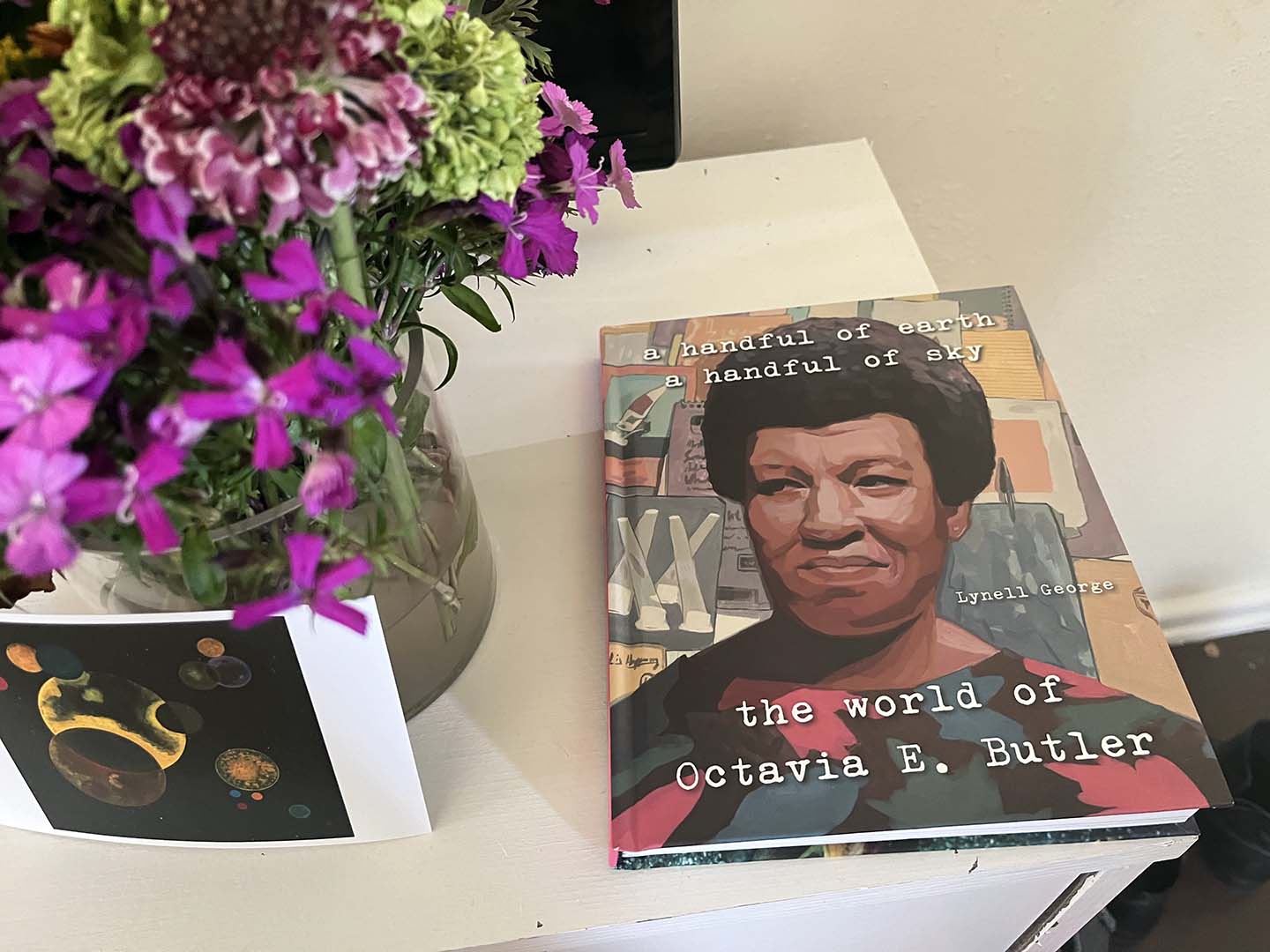 Pasadena, CA, then, is next. No plaques here, but a helpful map laying out routes frequently taken by Butler, prepared by people at the Huntington Library which holds the author’s archives. An even more helpful book by journalist Lynell George, A Handful of Earth, a Handful of Sky – the World of Octavia E. Butler, which introduces the canvas on which Butler drew both herself and the worlds she constructed from the insights captured by her daily struggles, the physical environment in which she labored, and the mental landscapes that she traveled while growing into the writer some of us now devour. George describes the author with exceptional sensitivity and intuition, during the years before Butler would go on to become a MacArthur (Genius) Fellow and win a Pen Lifetime Achievement Award, as well as Hugo and Nebula Awards for her trailblazing work in science fiction—the first Black woman to win both awards.