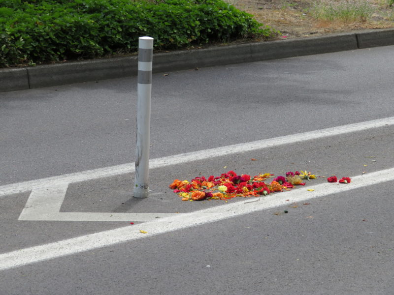 My Sunday walk brought me to the waterfront where the remaining floats were parked, flowers wilting and fruits, also used as decoration, seeming almost waxen.