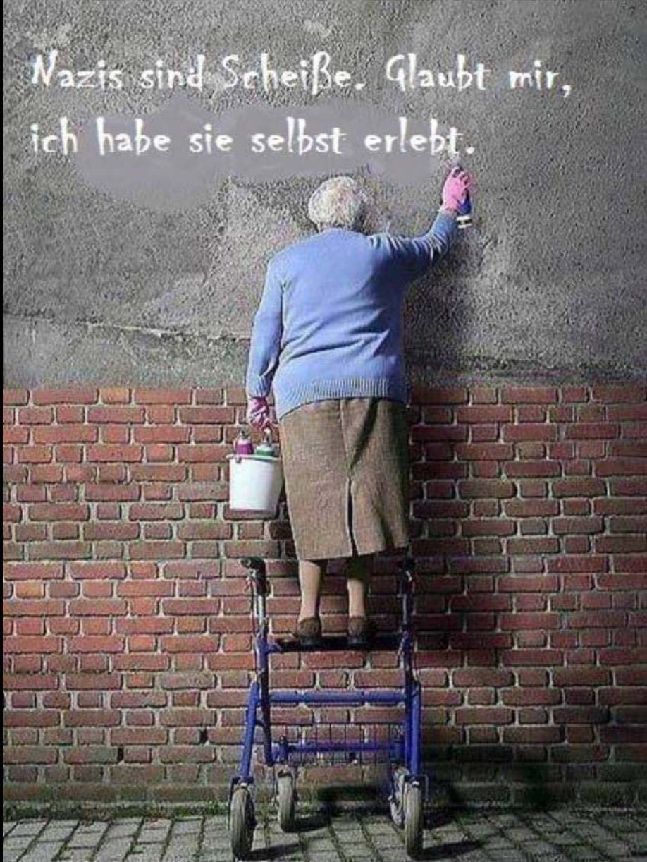 I found today’s title photo years and years ago on the net. The little old lady’s tagging says: “Nazis are garbage. Believe me, I have experienced them myself.”