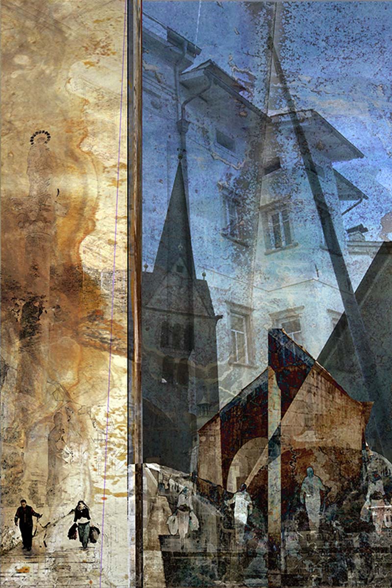 Photographs today are montages from an old series The Immigrants’ Dream.