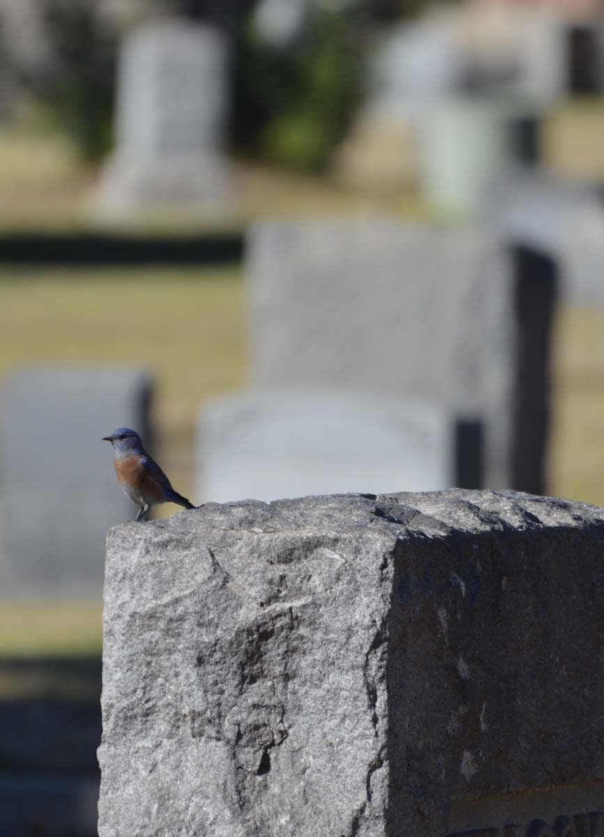 Bluebird photographs from November at Altadena’s Mountain View Cemetery where Octavia E. Butler is buried. She was an astute observer of our society and a brilliant analyst of our history, all of which allowed her to write the Parable of the Sower, not mystically prescient, but thinking things logically through to a likely end, deadly fires and fascistic rule, set by her in 2025.