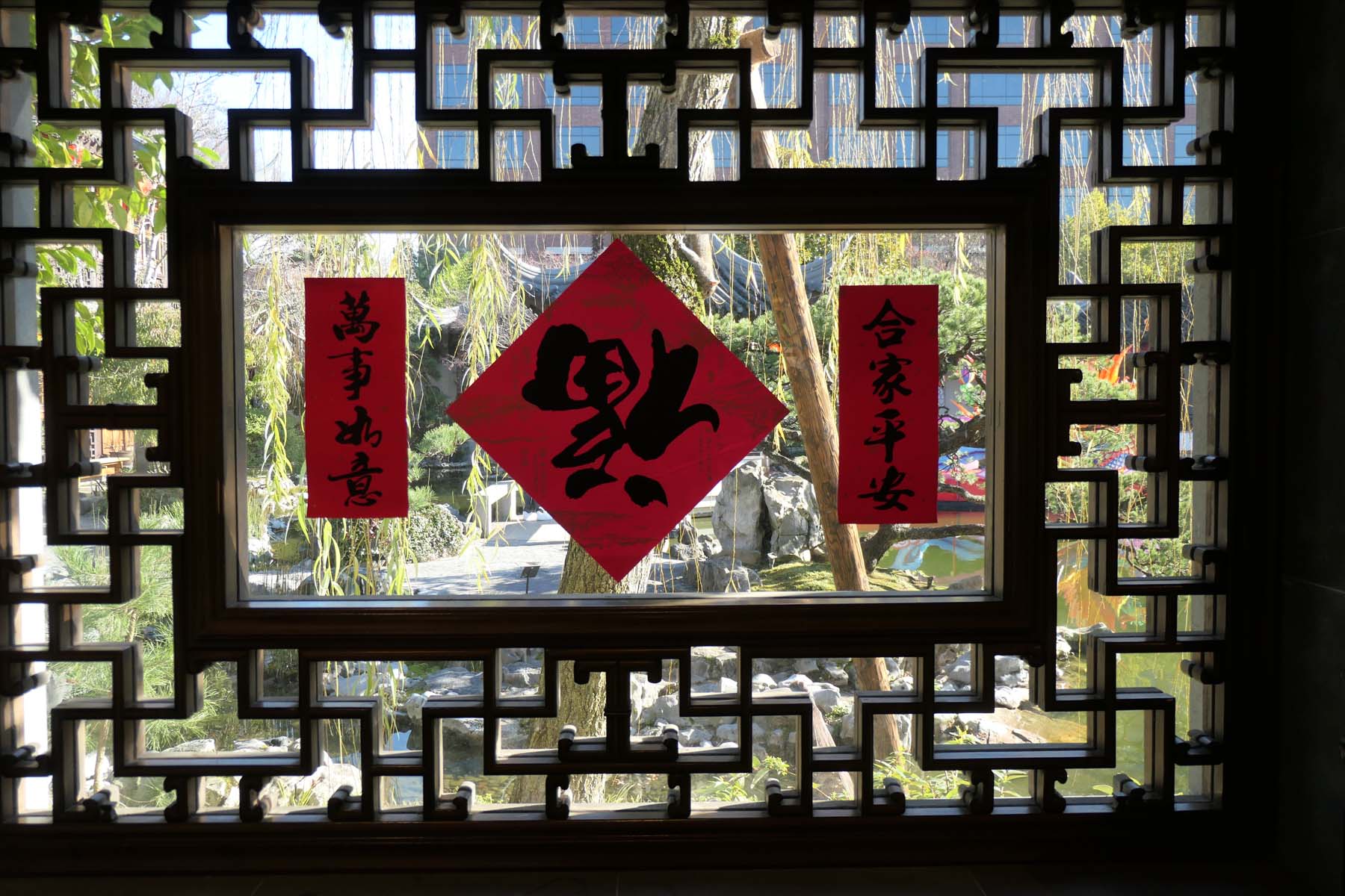 I went down to Lan Su Chinese Garden last week in anticipation of the Chinese New Year this coming Wednesday. The celebratory red balloons and technicolor floats on the pond were illuminated by a bright sun in a cloudless sky, strange for a late January day in the Pacific North West.
