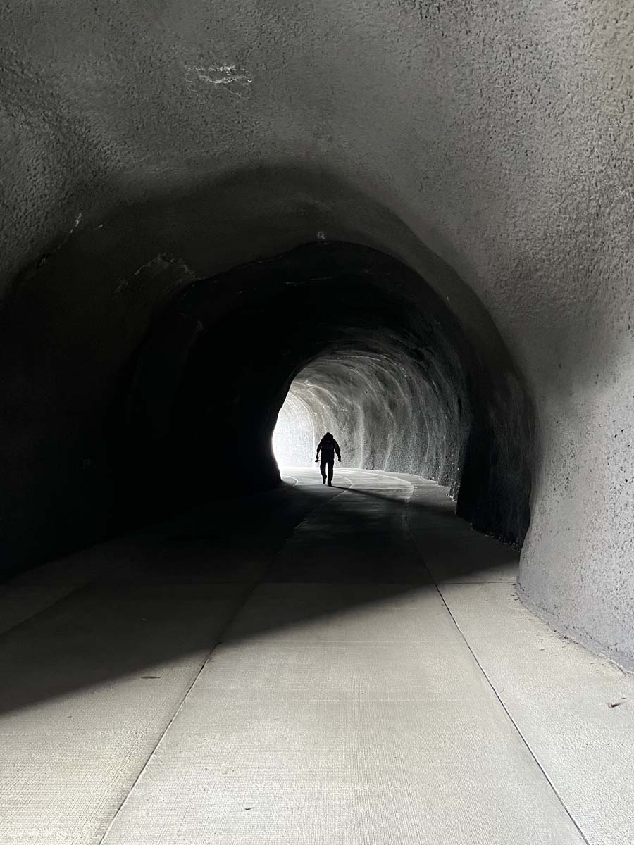 Tunnel as antidote to all this? Yes! Not only is there light at the end of the tunnel. The new tunnel mirrors the historic tunnel with re-constructed arched windows with views of the Columbia River, letting light in continuously along the way. Such a prominent reminder that not all is dark – there are islands of hope, of openness, of change and restoration (like this very tunnel), as well as resilience.