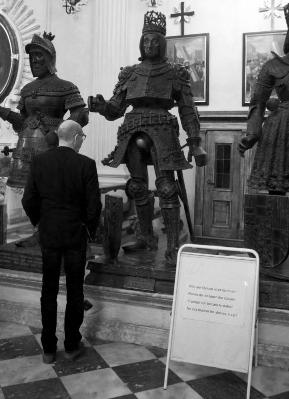 Imagine: on his deathbed, in 1519, this guy expresses a wish to be sepulchered in some chapel, surrounded by 40 larger-than- life statues made of bronze. Well, the 28 who are eventually completed are too heavy for the chapel. So his grandchild Ferdinand builds a new church, the Imperial Court Church, puts a cenotaph (empty grave) into it, and flanks it by the “black men” as they are known. Never mind that about half of them are women. I am not kidding you.