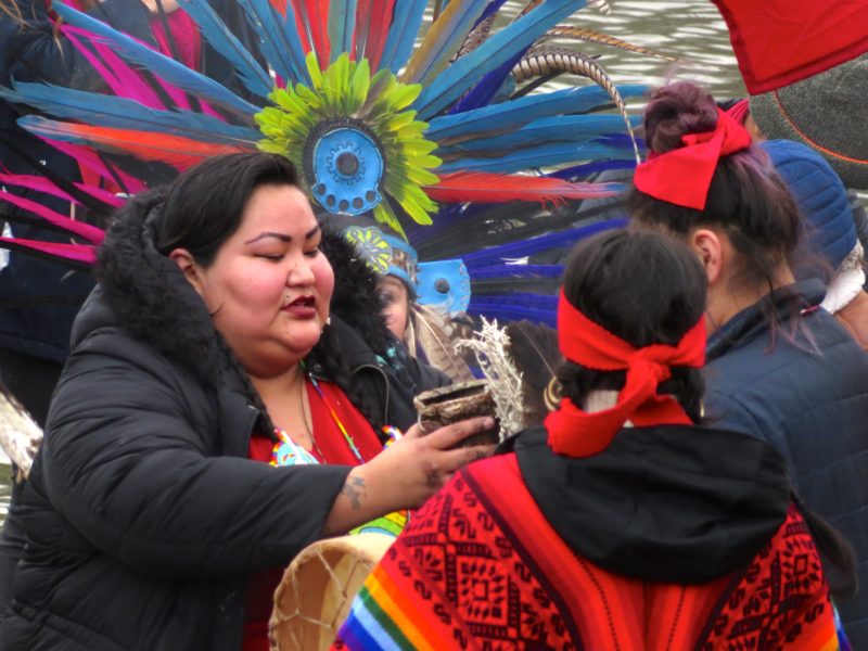 At the river all joined into a ceremony that combined traditional spiritual and progressive political elements.