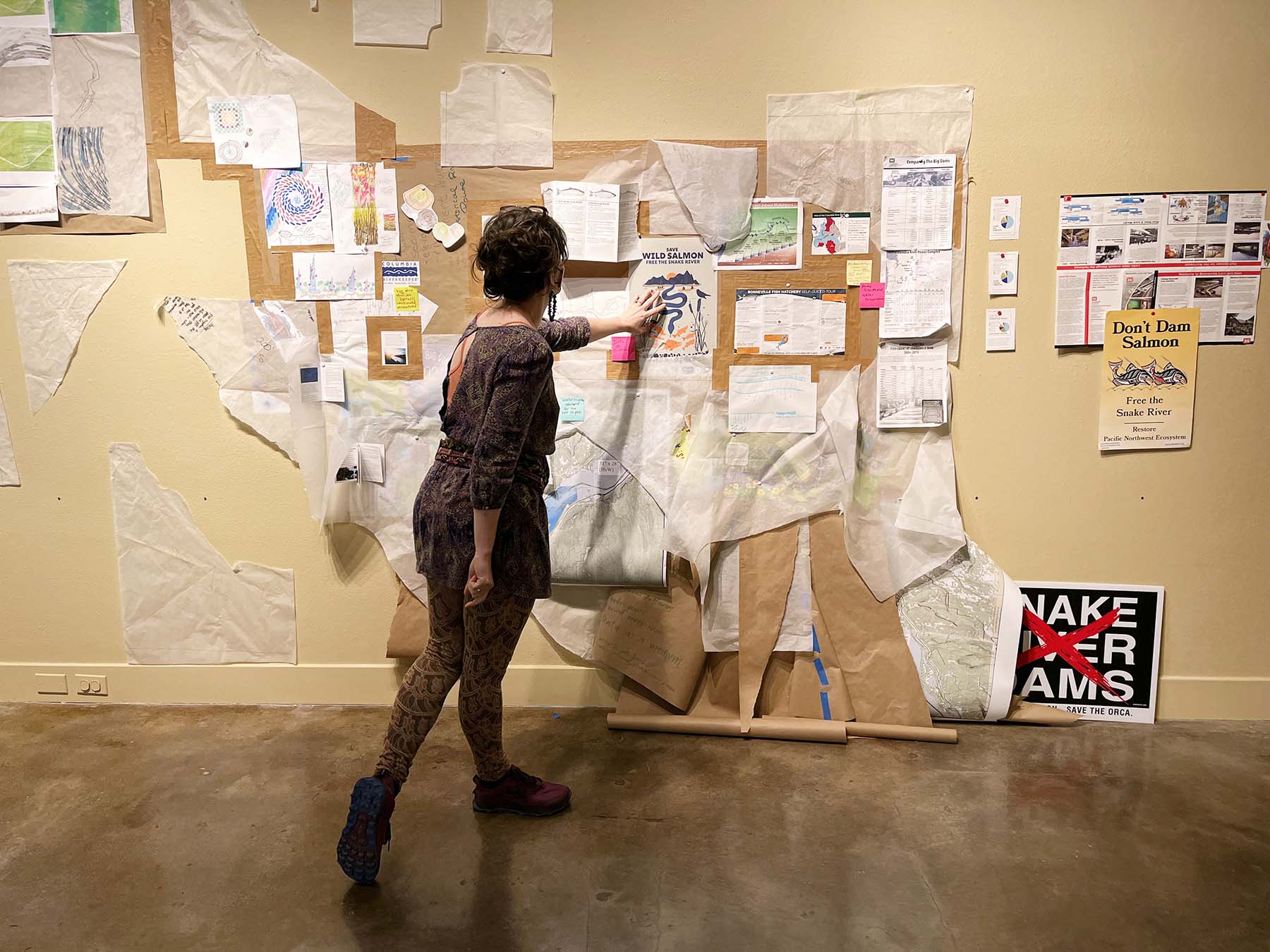 The design grew from early conversations about the history of the land and the people around the upper parts of the Columbia. Entire populations were displaced due to damming the river, disrupting existentially and culturally important salmon runs and access to the river also for Pacific Northwest tribal nations (I had previously written about the effects of dams on Native American life here). The landscape was changed and wildlife corridors disturbed with the erection of endless electricity towers and later wind turbines. Countless container freight trains arriving from all over Washington State these days are filled to the brim with trash, destined for landfills in Northern OR, Eastern WA and Idaho, which use the emanating methane gas to produce electricity.