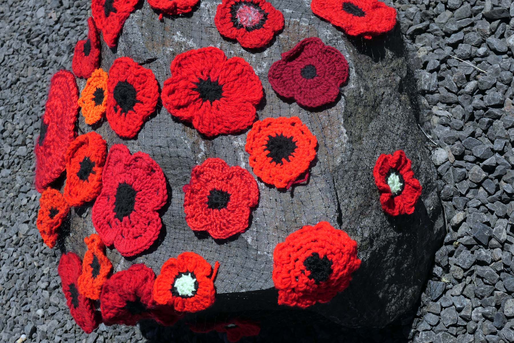Multiple volunteers helped in ever so many ways, sustaining the yarn bombing, the poppy project, manning the various booths that helped introduce visitors to different ways of manipulating fibers. At the day of the event, many helpers managed to set the frames in place and secure them on rails that had also been built by friends of the museum.