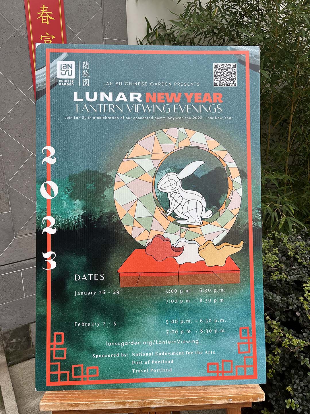 The Lunar New Year – The Year of the Water Rabbit – started yesterday and the Chinese government expects about 2.1 billion journeys to be made in Asia during a 40-day travel period around the celebration as people rush back for the traditional reunion dinner on the eve of the new year. I took a short trip to Portland’s Old Town Chinatown instead on Friday, an annual pilgrimage to admire the beauty of Lan Su Chinese Garden with its festive decorations for the occasion.