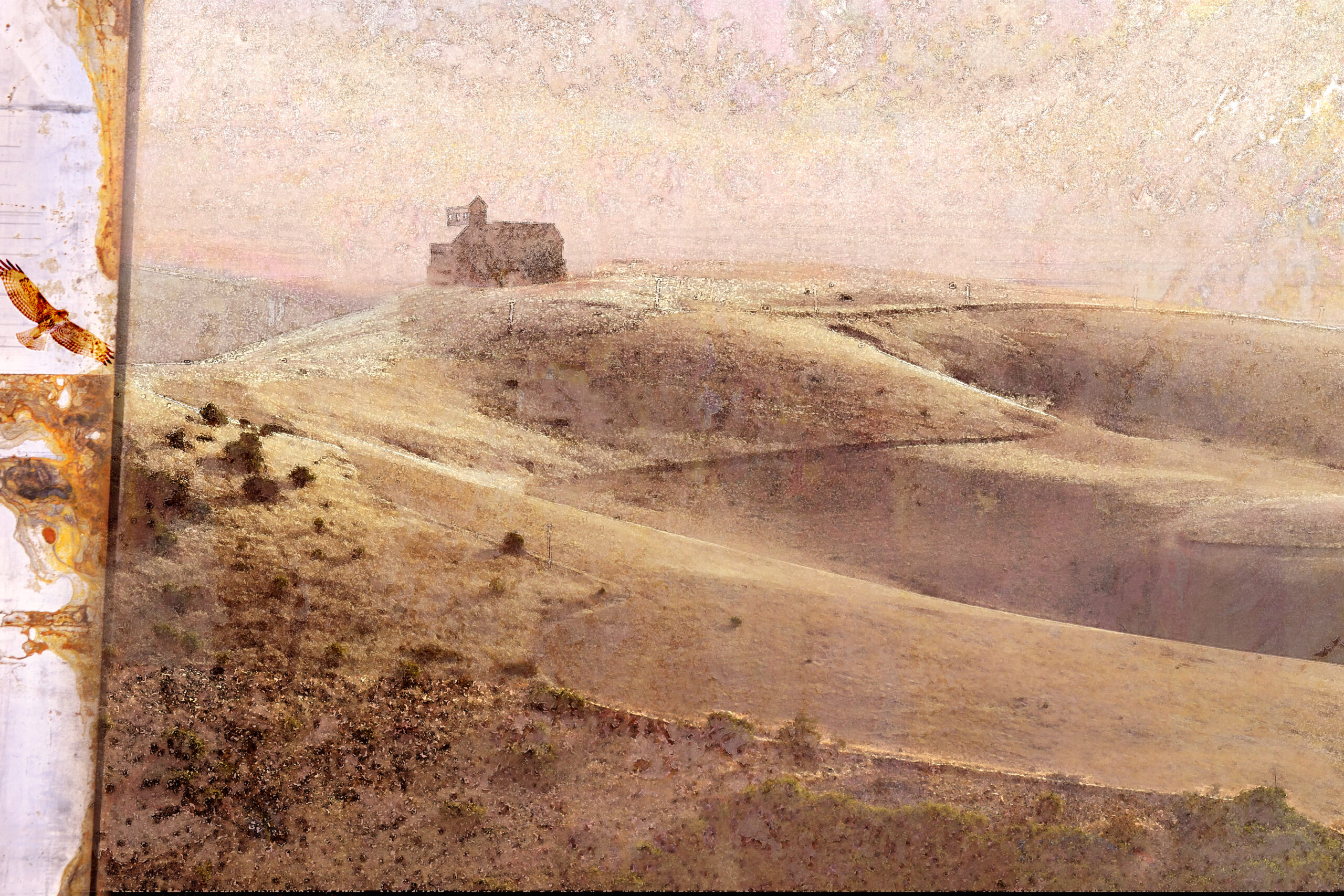 The portrait that drew my attention is simply called La Mujer en el Viento, the woman in the wind. No clue why the title is in Spanish, one of several mysteries surrounding the painting. Here is a wind strong enough to blow the entire mane of gorgeous blond hair towards the front of the person, completely covering her face, static electricity perhaps keeping the lighter strands in the air. Yet the slender figure seems to be neither leaning into the wind nor bent by it, wearing a white shirt too thin to protect from cold, too long-sleeved to be appropriate for sciroccos. The beautifully curved female upper body is situated against a body of water whipped into waves by the gusts, a backdrop of distant mountains, and a sky-scape that radiates rays reminiscent of medieval paintings’ practice to indicate a halo.